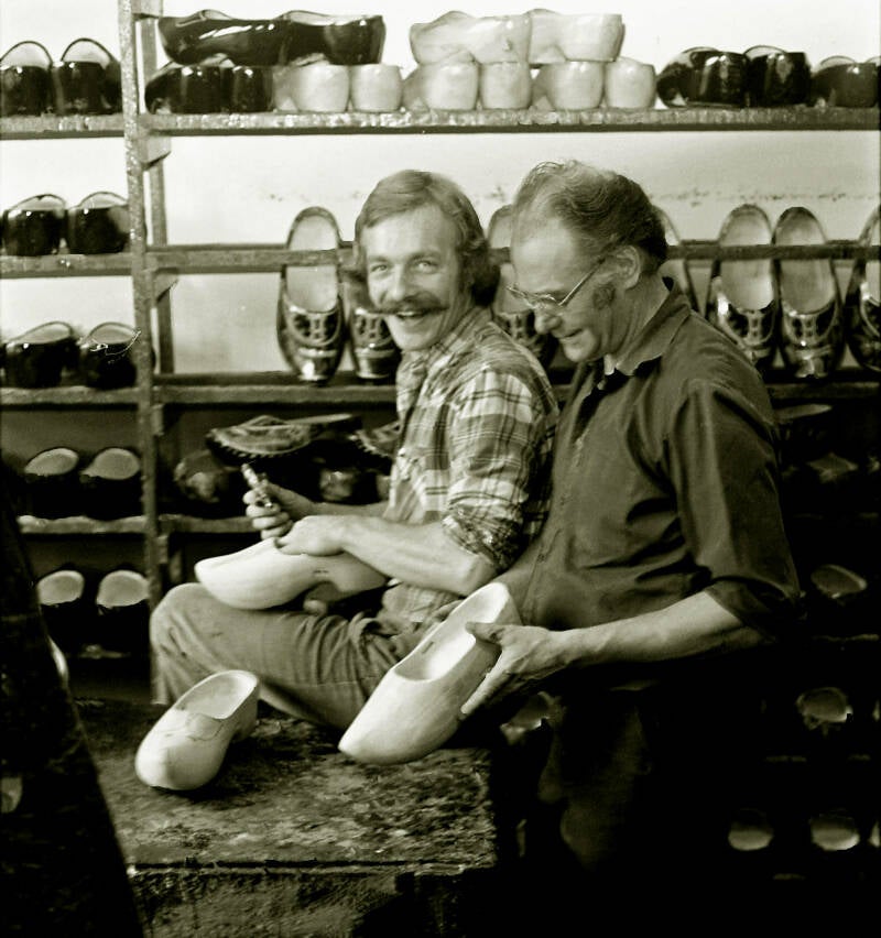 Heit en zoon, de klompenmakers Jehannes en Eelke Scherjon, F&F 1978